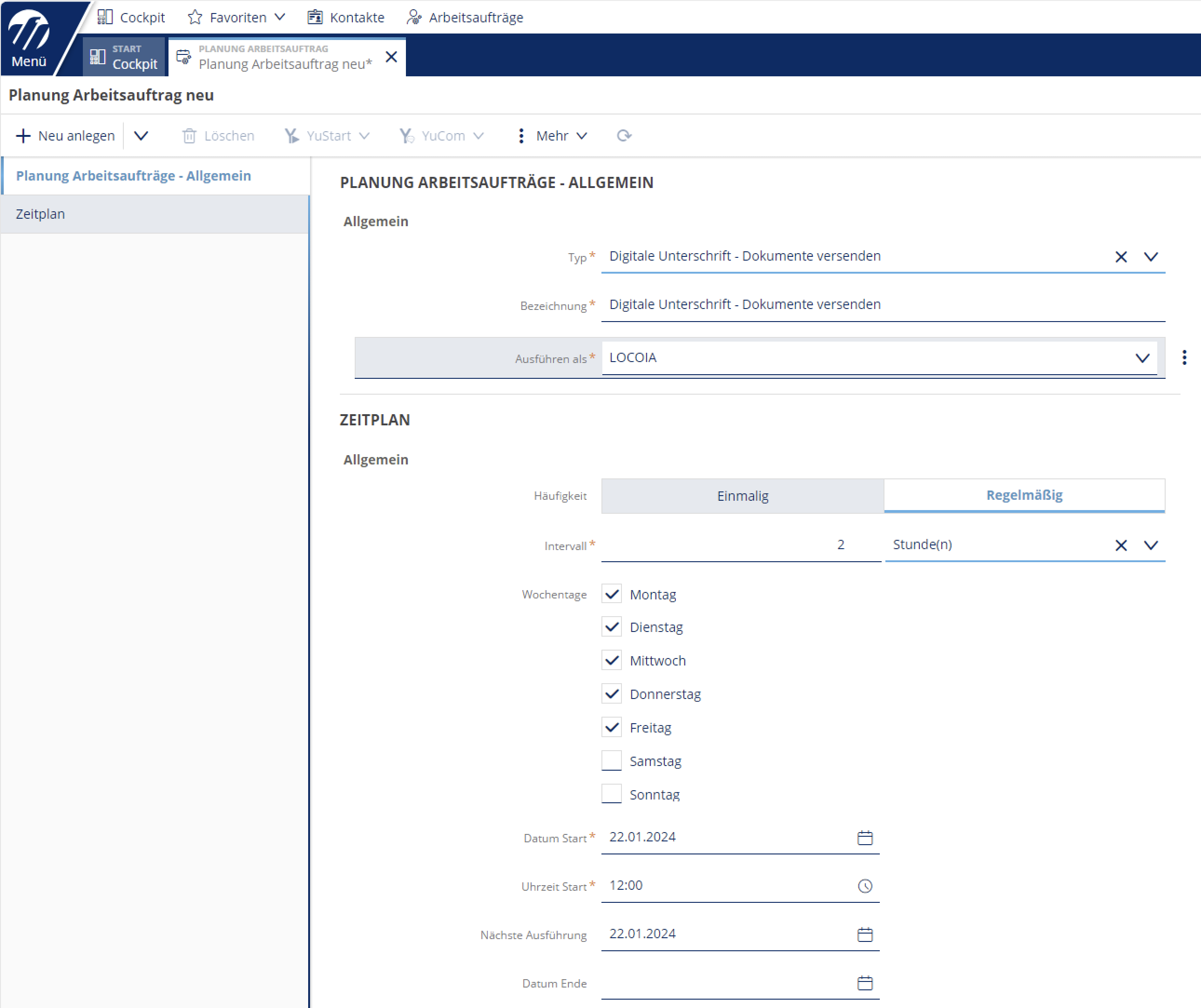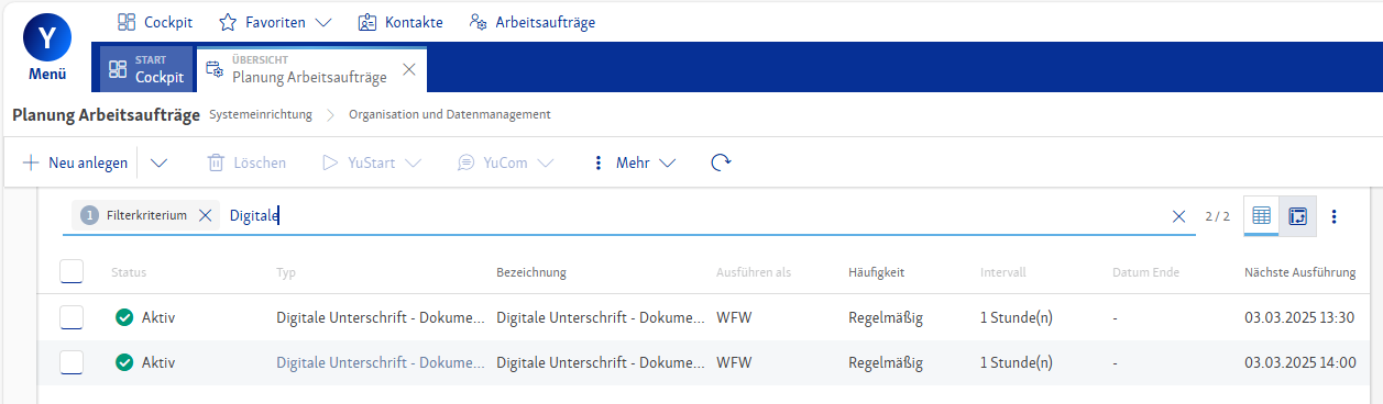 Nun müssen noch die passenden Arbeitsaufträge angelegt werden: